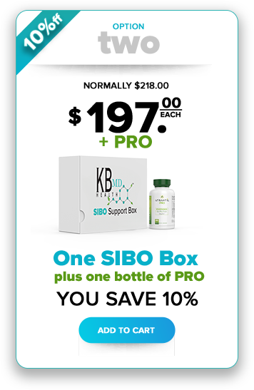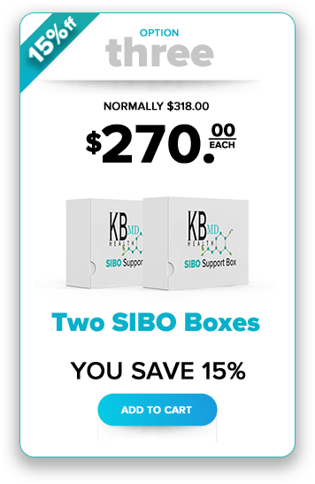This KBMD Health SIBO Support Box is the result of years of Research & Development in a complex field.  Here is a brief explanation of What the ingredients are, and How they work to relieve your SIBO symptoms.  Each Box contains 4 primary ingredients pre-portioned in easy-to-use AM and PM packets.